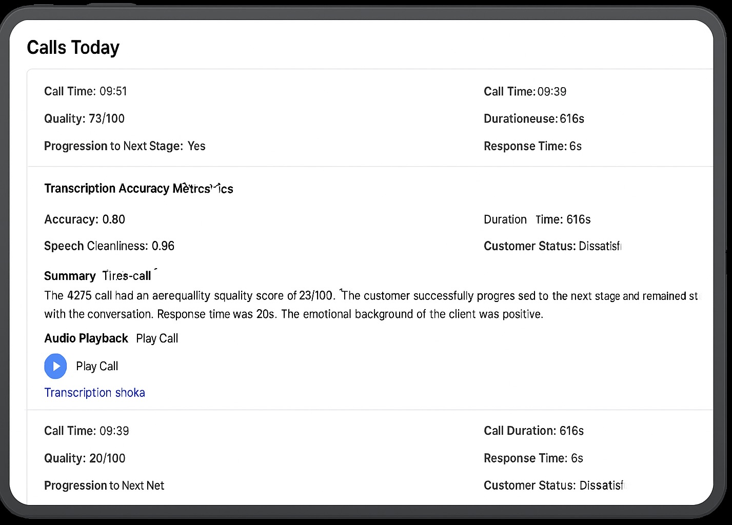 The human quality control team was cut by 50%, while the monitoring quality of the sales department improved. Cold call effectiveness also went up.
